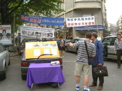 连日来,法国法轮功学员冒着烈日酷暑,持续几天在中国驻法使馆前和平集会;强烈抗议中共虐杀法轮功学员高蓉蓉,并要求严惩杀人凶手,立即停止迫害。