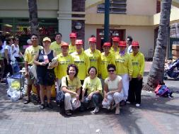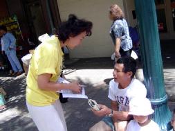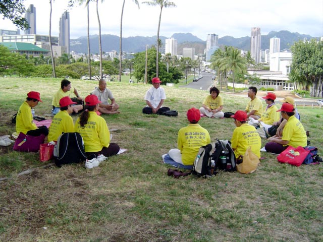【明慧网2005年6月29日】这个周末,夏威夷法轮功学员有机会和一些从台湾来的学员一起在夏威夷洪法并進行修炼心得交流。来自台湾的学员们由台湾屏东的陈先生带队。他们在短短的时间里在夏威夷各地洪法,把他们从修炼法轮功的收益与他人分享。夏威夷感受到了他们带来的强大、慈悲之场。