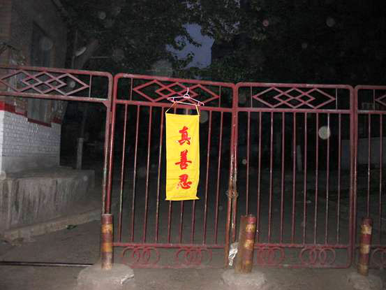 2005年6月4日早,我和同修一起挂条幅、贴真象宣传画。早上4点50,我们去了太原矿山机器有限公司(原太原矿山机器厂)宿舍。1994年师父曾莅临太原,在太原矿山机器厂礼堂办班讲法,这里有许多人学炼法轮功。同修把“真善忍”条幅挂在宿舍区大门上,用胶带纸固定好。