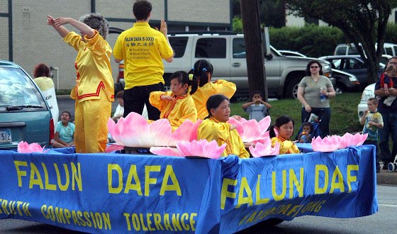 图片报道:堪萨斯法轮功学员节日游行中洪法