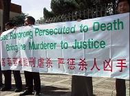 马来西亚法轮功学员于2005年6月30 日在中国驻马大使馆前集会,抗议中共虐杀中国法轮功学员高蓉蓉,并呼吁严惩凶手。