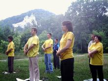 2005年6月26 世界反迫害日,乌克兰康斯但丁诺夫、北顿涅茨克和拉马朵儿斯克市的法轮功学员在乌克兰著名的“拉夫尔圣山”一同举行了反酷刑活动。