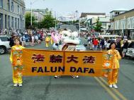 仅仅在一年多前, 三皇岛上一位年轻人在网上发现了法轮大法的信息,从此开始自学大法。 很快,他的家人和朋友们便认识到他所学习功法的重要意义。今天,岛上已经有一小组并迅速扩大的人群在学习大法。这些新学员们常常与华盛顿州其它地区和俄勒冈州的学员们共同在三皇岛屿上传播大法。我们的游行给岛上的居民带来了巨大的震撼力。