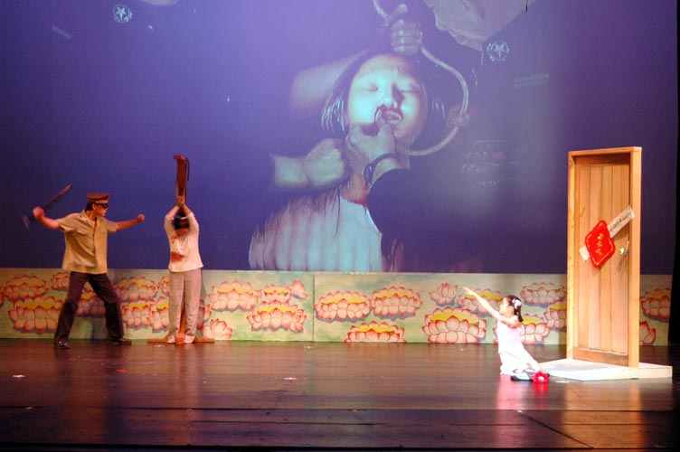由法轮功学员编导演出的舞剧“我的童年”,艺术的再现了恶警破门而入抓捕学员,放学归来的小女孩在要“妈妈”的哭喊中被恶警强行推搡在地,醒来后发现家已被封的孤苦无助。夜幕下,小女孩和妈妈在睡梦中团聚,过上一起修炼升华的幸福生活。主人公小女孩由纽约的一位三年级学生,九岁的高兴(Cayla Gao)小朋友表演。高兴自幼练习舞蹈,舞台上她的表演纯真感人,受到好评。