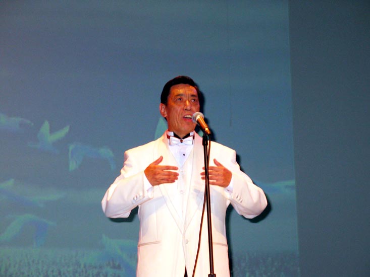 著名歌唱家关贵敏先生在这场演出中献上两首歌:“在这难忘的时刻”和“与你比邻而坐”。歌曲表现了修炼法轮功的喜悦和呼吁大家一起制止迫害的愿望。