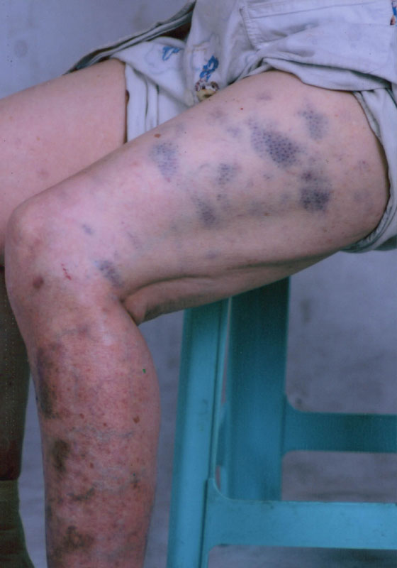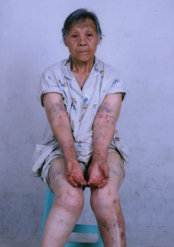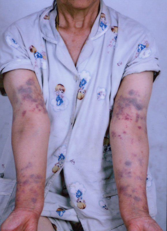 谢忠贵76岁的母亲皮玉明得知儿子遭到绑架后,即去派出所找到有关人员理论,可是没有任何结果。7月6日下午,皮玉明老人再次去分局申冤,结果上来六、七名恶警,采用使劲拧扭的恶毒手法,将皮玉明四肢死死拧住,在众多的人面前,把她强行塞入车内,致使这位七旬老人浑身上下多处损伤。