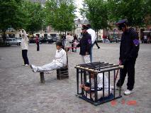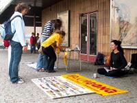 2005年7月7日,我们在法国诺曼底省讲真象的活动的第一站——里日市开始了以反酷刑展、功法表演、派发法轮大法真象资料和赠送纸莲花等方式的讲真象活动。