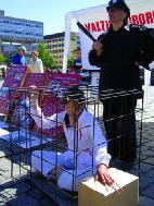 4 月1日,马三家将不放弃信仰的大法学员共144名全部严管,吃黑苞米面窝窝头,不让洗澡,不让洗衣服,连做人的基本权利都剥夺了。大法学员又集体绝食抗议,反迫害。一天突然闯进七八个男女恶警,带胶皮手套,塑料薄膜,撬棒,将大法学员强行按在地上,用塑料薄膜将脸全盖上,撬棒撬,管子使劲往里插,顿时走廊里惨叫声不绝于耳。大法学员王金凤、董敬哲、邱丽等人当时几乎窒息。
