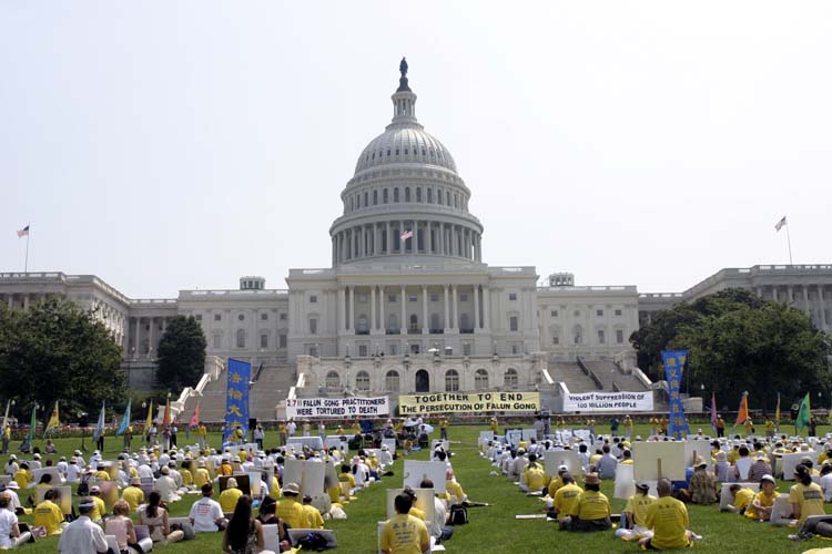 自1999年7月20日,中共江泽民集团发动了对法轮功的迫害以来,迄今已是第六年。面对国际社会的压力,中共对法轮功的迫害的手法也有所改变,由以往的大张旗鼓的公开迫害转为内紧外松。表面上有所松动,但实际上迫害的残酷程度却丝毫没有改变。与往年一样,法轮功学员在迫害的周年纪念日,来到华府国会山前举行集会,呼吁国际社会继续关注中共对法轮功学员的基本人权的野蛮迫害。