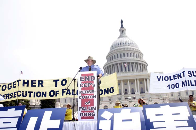 国会议员克里斯·史密斯今年也再次出席的法轮功学员的集会国。他说,今年的7月20是中共迫害法轮功六周年。在2004年美国国务院的人权的报告中,占相当大的比重是关于中共对法轮功的迫害。数千人被迫害致死,更多的人被酷刑折磨,被关进精神病院,被关进劳改营。北京当局必须立即停止对法轮功学员的迫害,尊重法轮功学员信仰的权利。