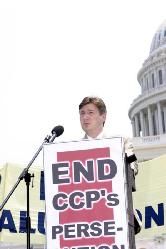 国会资深议员汤姆·兰托斯(Tom Lantos)派代表汉斯在集会上发言,他说,国会人权委员会核心小组是最早关注法轮功在中国被迫害的机构。除了酷刑、强奸,中共还利用了所有宣传机器来诋毁法轮功,但是,人权委员会核心小组深知中共的伎俩,不会被中共所欺骗。兰托斯议员和其他核心小组的成员将继续关注中共对法轮功的迫害。