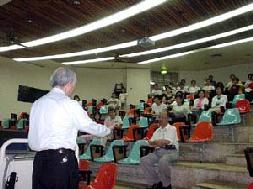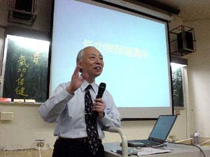 “有科学家说在过多久之后人可以活一千两百岁,请问各位听了高兴吗?”“不高兴!”“为什么不高兴?!因为活那么长,却都是病,如何能高兴!………治病的药不必去外面找,因为药都在自己身上………”在听众的回应之下,法轮功学员胡乃文医师渐渐的将听众带入他的演讲之中。这是该学期第二场由中央大学教职员法轮功社团主办的演讲活动,是继第一场由陈彦玲教授主讲之后,又一场深受好评的演讲。