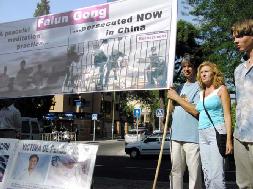 据组织者说,江××发动了这场对法轮功学员“名誉上搞臭、经济上截断、肉体上消灭”的迫害。法轮功学员此次活动是悼念自1999年来在中国发生的群体灭绝的受害者。