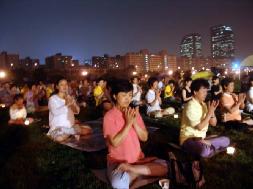 7.20,是法轮大法和大法弟子蒙难六周年的日子。韩国部份法轮功学员于当日晚在汉江旅游点举行了烛光守夜活动,悼念六年来被中共邪党迫害致死的大法弟子。在昏暗的灯光下,面对来来往往的游人,学员们挂横幅
