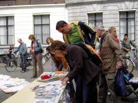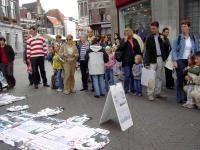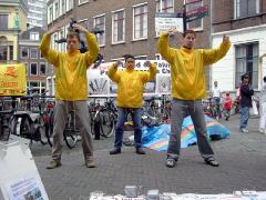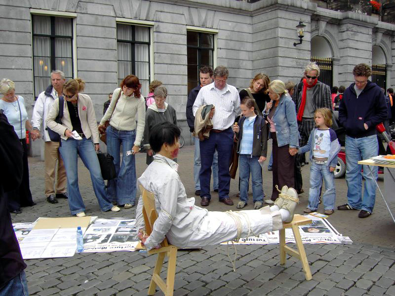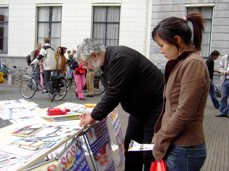 反酷刑展吸引了众多的当地人,学员告诉他们,在中国人们因为炼这套功法(指着炼功的学员)而被关進监狱,在监狱里他们受到这样的酷刑折磨(指着右边),甚至被迫害致死。人们進一步问,“为什么?”学员解释说,有两个主要原因。第一,因为中共的邪恶本质不能容忍法轮功所倡导的“真、善、忍”。第二,因为中共的前总书记江××对人数众多的法轮功妒嫉。很多人感到震惊,询问自己是否能有所帮助。在支持荷兰诉江案签名的桌前,人们常常排着队等待签名。