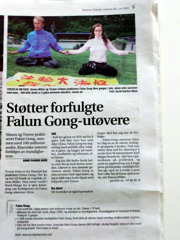 他们两位希望住在哈斯达的人们能够关注那些受迫害的人。西蒙强调:“法轮功修炼者在中国是受到迫害的最大的人群。人们可以用不同的方式给予支持。比如给挪威总理写信,使他关心此事,向中共施加压力。也可以给中共驻挪威的大使馆发电子邮件或传真。”
