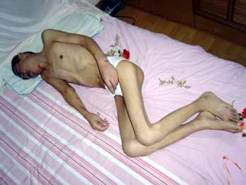 另据明慧7月16日报道,法轮功学员安森彪,38岁,大庆采油二厂职工,2005年1月24日因讲法轮功真象,被不法人员绑架,在龙凤看守所禁闭室戴30多斤重的死刑犯脚镣与地环铐在一起,寒冷冬天棉衣棉裤被凉水浇灌湿透;……2005年7月13日,奄奄一息的安森彪由家人接出。昔日健康体重165斤的他如今仅85斤、骨瘦如柴。由于长期被捆、铐,双臂强直、不能弯曲。