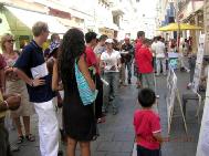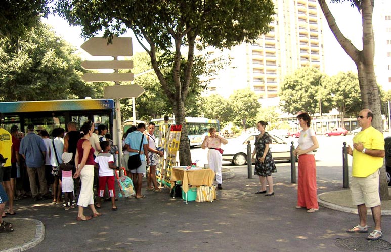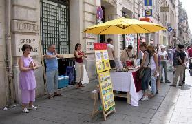 【明慧网2005年7月28日】在中共迫害法轮功六年之际,法轮功学员们于2005年7月23、24日,连续两天在法国的老港,亦是第二大城市——马赛市,市中心最繁华的地段和通往海边的地铁出口处,摆放展台,介绍法轮功,并向那里的人们揭露中共残酷迫害中国法轮功学员的事实。川流不息的过往人群纷纷驻足观看,索要资料。