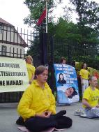 法轮功学员在爱沙尼亚中使馆前抗议迫害