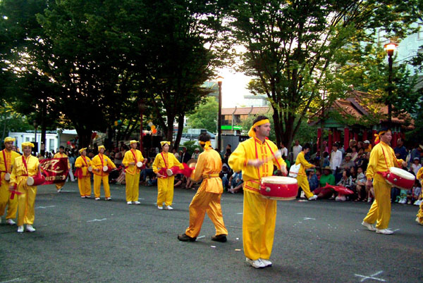 腰鼓队领队是一位西人弟子。他后来说:“真的能感受到每一声击鼓都是‘真善忍’。”