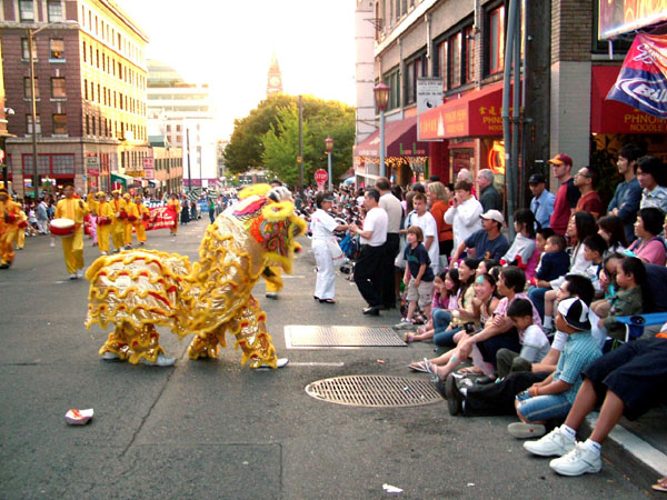 西雅图中国城游行 法轮功受观众欢迎(图)