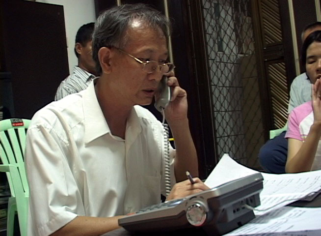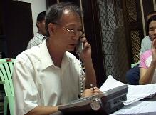 陈先生:我跟大家分享一个打电话讲真象的经验,有一次打劳教所,对方接了电话,听他口音大概是四、五十岁的一个中年人,他说他是在劳教所里负责教育、管理的,他态度非常不好,非常生气、动了怒,还讲了几句没有修养的话,讲的话不堪入耳,当时我就被他的话语愣住了,因为我心里只想到三个字:完蛋了。我嘴巴讲完蛋了,我心里想这个人怎么办,当我愣在当时的时候,旁边有一个老同修,他看了以后,心想这个人太邪恶了,他说这个人太邪恶,非正过来不可,否则他会继续破坏大法。