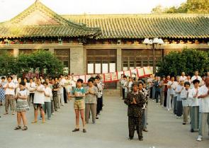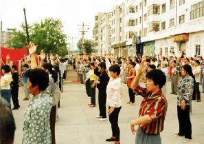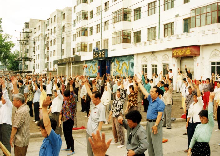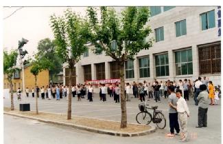 图片:98年大法弟子在辽宁凌源市政府门前集体炼功