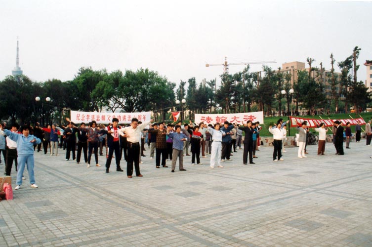 图片:99年前,长春大法弟子在文化广场集体炼功
