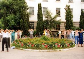 1998年5月2日星期六,长春市四面八方的学员来到西安广场集体炼功、弘法。纪念李洪志师父传功讲法六周年,炼功和普度的音乐在空中飘荡,真是佛光普照、礼义圆明。