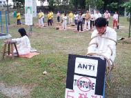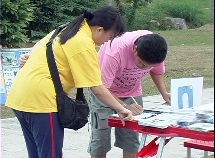 【明慧网2005年7月4日】近日来,马来西亚法轮功学员在几个不同的公园炼功点举行了反展活动,揭露中共对法轮功的残酷。2005年7月3日(星期日)早上,反酷刑展在八打灵(Petaling Jaya)的Taman Sri Aman公园的炼功点举办。虽然当天公园里晨运人士不是非常多,但是,经过活动地点的人士大部份都很乐意接受资料及聆听学员们讲述发生在中国的迫害真象,尤其当提到最近发生的中国法轮功学员高蓉蓉被残酷迫害致死的骇人听闻事件,人们都不禁为之动容,过后都以实际行动签名支持反迫害。