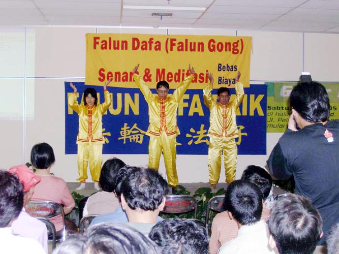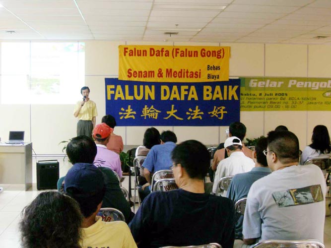 【明慧网2005年7月5日】为恭贺其诞辰,2005年7月2日,“资深”(Senior)杂志举办“别类保健法”活动,有数十位保健公司参与当天活动,有草药治病、气功等。印尼法轮功是参与活动,唯一不收费的义务教功的气功修炼团体。