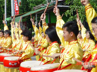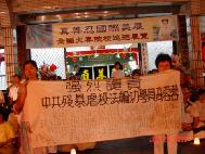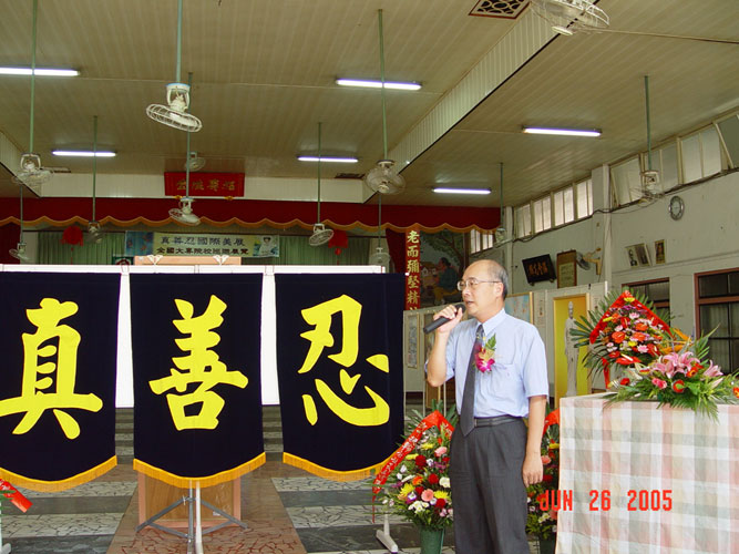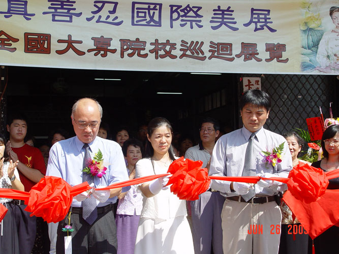 【明慧网2005年7月5日】曾在美国、加拿大、印尼等国家30多个大城市巡回展出的“真善忍国际美展”,2005年6月26日来到了南台湾的屏东县潮州镇,开始一连四天的展出。美展开幕当天,当地的法轮功学员以精彩热闹的法鼓阵,为美展揭开序幕。台湾屏东县潮州镇的大家长潮州镇长及垦丁国家公园管理处主任也到场剪彩致词。