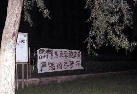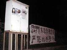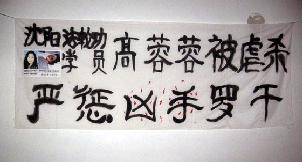 ![]() 揭露迫害真象的展板 | ![]() “法轮大法”“真善忍”横幅 |