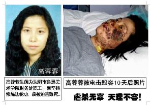 李昌军(音译),一个33岁的工程师,由于他的宗教信仰而被解雇,于2001年5月16日由于从互联网上下载法轮功运动的信息而被捕。6月27日他的家属接到他的死亡通知,他的母亲说:“他只剩下皮和骨头,他的脸和脖子上都是伤痕,他紧握双拳,牙齿全无,面目全非,他后背被烧得象熟了一样。样子非常可怕。”