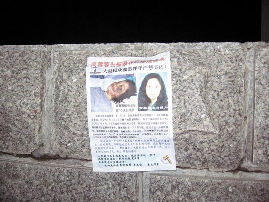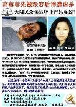 展厅大门出口放置了揭露大陆法轮功学员高蓉蓉被虐杀情况的展板,民众看了,都不敢相信这种事竟发生在21世纪的社会,除表示同情外也纷纷签名声援制止这场迫害。晚上在美展前人行道上举行法轮功学员高蓉蓉追悼会默哀一分钟、呼吁大家来制止迫害、关注这场发生在中国大陆自1999年至今仍未停止的对法轮功学员的群体灭绝迫害、并呼吁中共立即停止迫害,严惩杀害高蓉蓉的凶手。