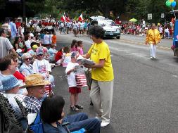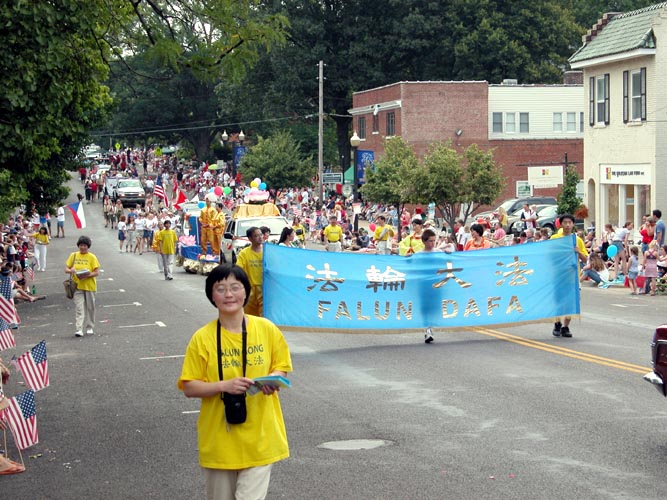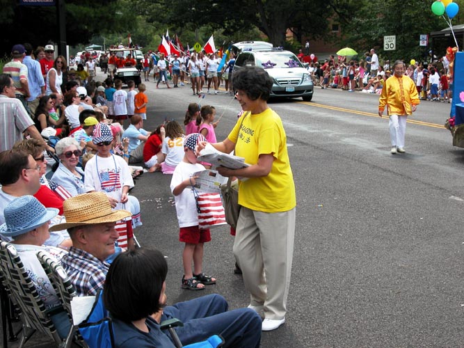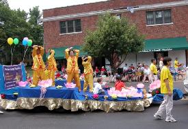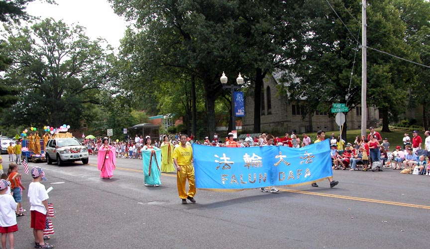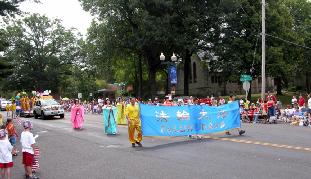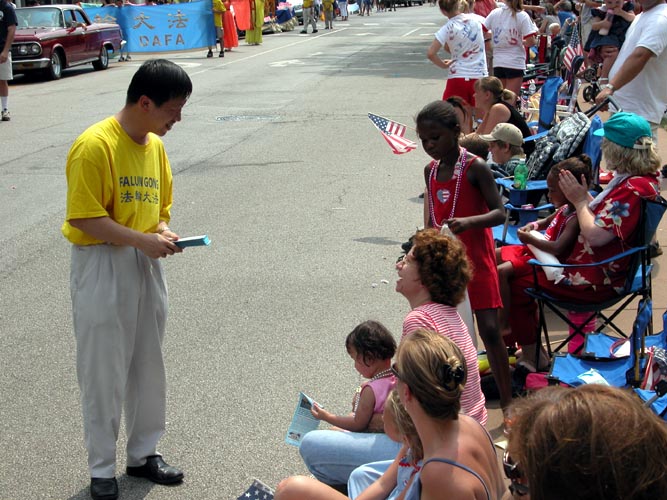 【明慧网2005年7月6日】2005年7月4日,密苏里圣路易法轮功学员再次来到韦伯思特(Webster Groves)市参加这里举行的国庆节“独立日”大游行。