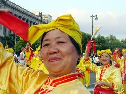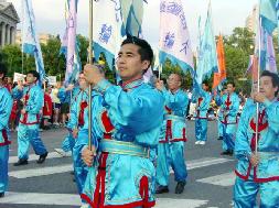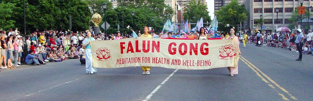 【明慧网2005年7月6日】2005年7月4日傍晚,美国最古老的城市费城富兰克林大道两旁人头攒动,长达一周的美国独立节庆祝活动进入了最高潮,数十个团体参加了盛大的独立节游行。费城是美国独立宣言的诞生地,在这里庆祝独立节无疑具有特殊的意义。来自大费城地区的法轮功学员作为这次唯一以华人为主的团体应邀参加,再次为当地和电视机前数百万观众带来了法轮大法的福音,这个仅仅因为信仰而在中国受到残酷迫害的团体的参与,也赋予了独立节纪念自由、独立的新内涵。