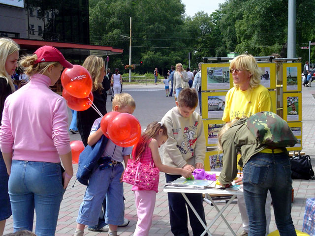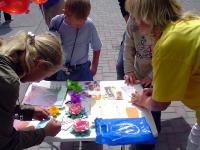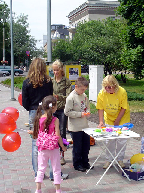 活动期间很多家长带着孩子来到炼功场地,非常感兴趣的学习叠纸莲花。得知法轮大法的法理后,很多人都表示要学功,他们说:“我们需要善良和忍耐”。