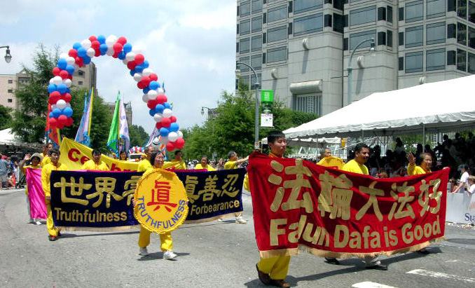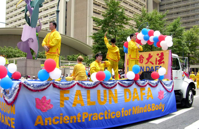 美国的立国之本是自由和民主,《独立宣言》是于七月四日签署;法轮功学员们激扬的鼓声在庆祝节日的同时也是在提醒人们,在地球另一边的中国,仍然有成千上万的法轮功学员身陷囹圄,无法象美国人这样享受最起码的人权和自由。