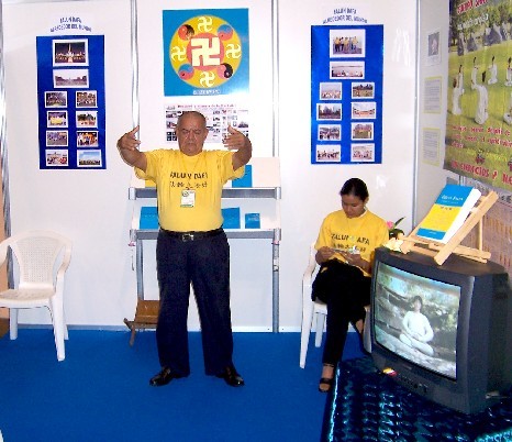 当天一早,来自法国东部地区的西人学员,就布置好了向公众介绍法轮功(法轮大法)的展台。尽管气温在36度以上,非常酷热,也没能挡住人们前来了解法轮功以及法轮功在中国遭受非法迫害的真象。