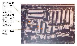 提篮桥监狱后门照片(远景图),所谓“新岸礼堂”就是家属和犯人会见的地方。通过这张照片我们可以看到里面小监的窗户。提篮桥监狱接见设施监控非常强,每个到这里的家属通过一个小玻璃窗和家人互视“打电话”,并不允许身体的接触。然而却对犯人家属考虑的很少,接见的时候家属就在这里排起长队,“直面风雨”。