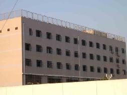松江女子监狱后视图。高墙耸立和铁窗紧闭。有空调的是警察的办公室