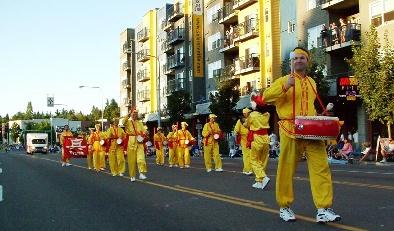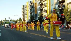 ![]() 法轮功学员们第五次参加海洋节湖城市社区游行 | ![]() 走在湖城市社区游行里的腰鼓方阵 |