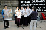 2005年8月7日,在波士顿中国城庆中秋活动中,法轮功学员的摊位以营救在中国大陆受迫害的法轮功学员的遗孤们为主题,学员们分守在各个路口,散发营救孤儿的传单;小弟子们也在发传单,折莲花;摊位前,人们纷纷踊跃签名支持营救。