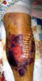 这样焦龙被出租车司机送走。因为耽误及时救治,他的腿肿得象小水桶一样粗,脚肿得也很高。后来辗转来到外地,直到现在他的腿还没有恢复正常。