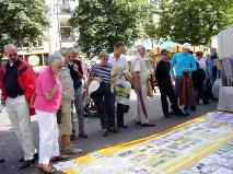 ![]() 荷兰小城人们震惊于还在发生的残酷迫害 | ![]() 人们围着真象图片展认真观看 |
