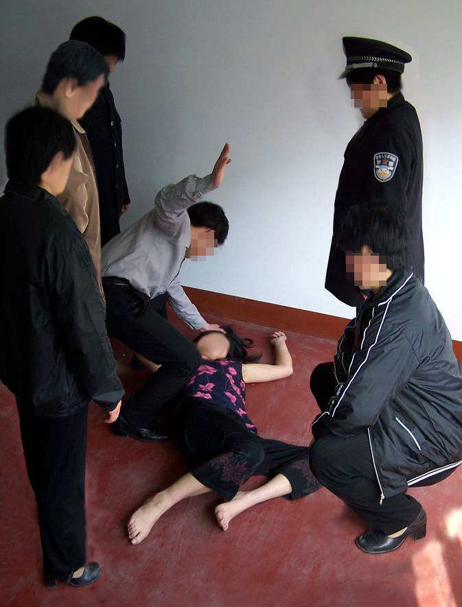 ![]() 骨盆跌裂时,江静被刘展残暴殴打(演示图) | ![]() 在四所,刘展狠抽了江静数十个耳光。致使江静嘴角流血,脸部肿胀,浑身抽搐不停。(演示图) |