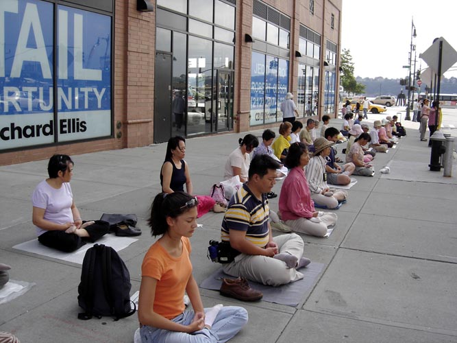 来自南台湾屏东的三位家庭主妇学员,子女已长大,获得家人的支持,长期在曼哈顿讲真象,她们参与每天曼哈顿街上的反酷刑展,以揭露中共对大陆同修的残酷迫害手段,她们有时扮演被迫害同修、有时派发传单、有时展示功法,有时去中领馆前发正念,无论晴天和雨天一天没落下。虽然她们只学会一点英文,但是来签名支持的人很多,有人还抱着学员激动的又哭又亲的,有人要捐钱帮助,但是都没收,只希望他们能把真象告诉更多人,电视和报纸的记者都来采访、拍特写镜头。
