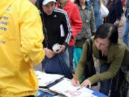 学员们耐心的一遍又一遍回答着人们的问题,讲述着法轮大法弟子在中国遭受中共迫害的始因,揭露中共恶党反人类的本质,唤起着人们的正义良知。