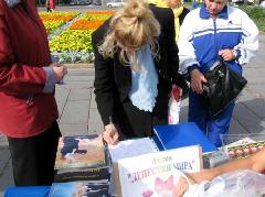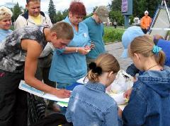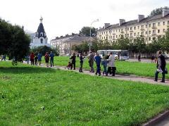 【明慧网2005年8月22日】2005年8月中旬的这个周末,俄罗斯部份法轮功学员利用休息时间驱车来到普斯科夫市進行了洪法和讲真象活动,受到当地民众的欢迎。